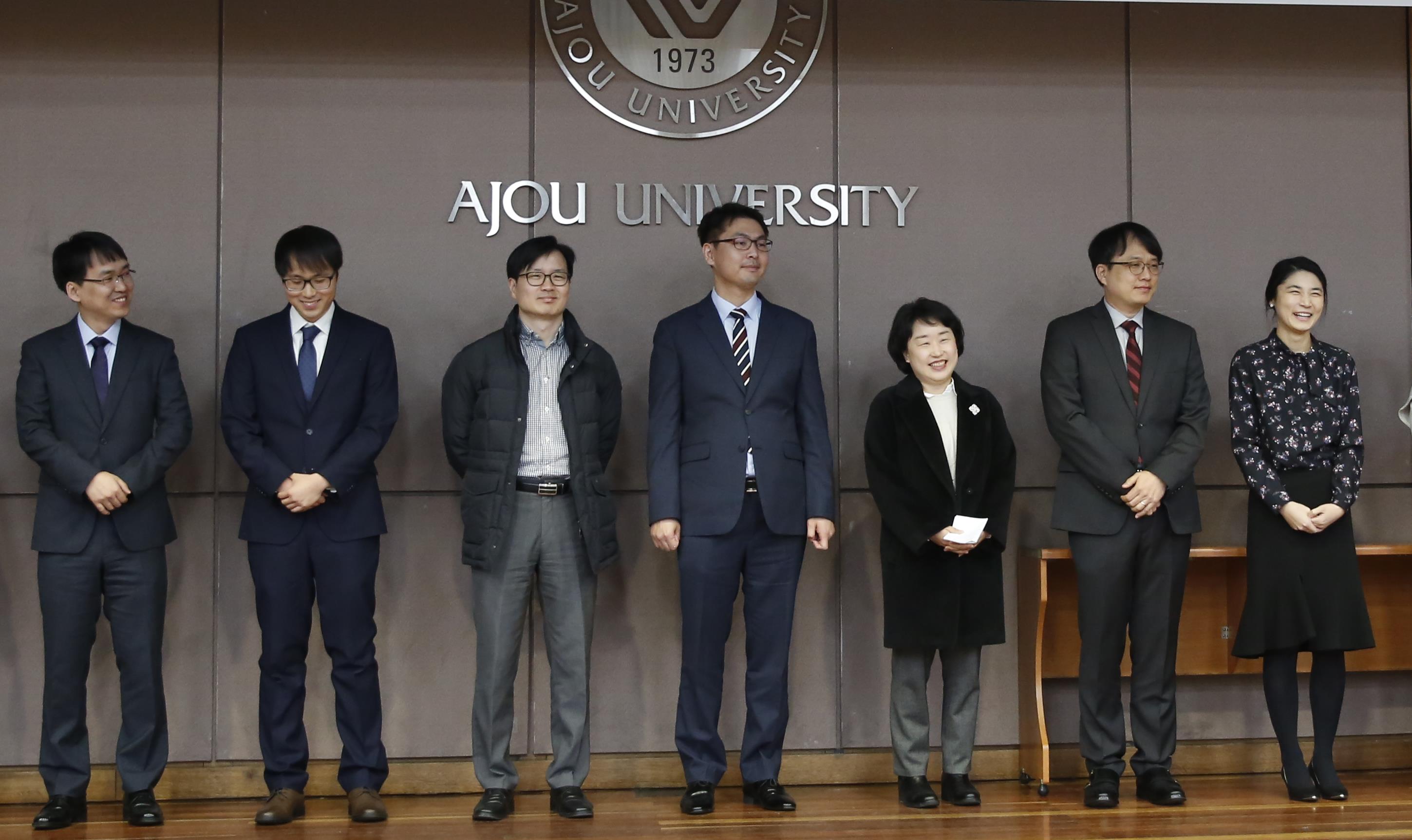이건모 교수를 비롯한 8명의 교원이 2017학년도 2학기를 마지막으로 정년퇴임한다. 이에 정부포상 수여를 위한 오찬 행사가 마련됐다.이건모(환경안전공학과), 신동우(건축학과), 제해성(건축학과), 김광윤(경영학과), 이주희(경영학과), 김태승(사학과), 김혜숙(심리학과), 이민규(심리학과) 교수가 2017년을 마지막으로 정년퇴임한다. 지난 27일 마련된 오찬 행사에는 퇴임하는 교수들과 박형주 총장, 최경희 산학부총장을 비롯한 학교 관계자들이 참석했다. 박 총장은 정부포상을 수여하고 감사패와 꽃다발을 전달했다.정년퇴임을 맞아 신동우 교수(최초 임용 1989.8)와 제해성 교수(최초 임용 1987.3)가 근정포장을 받았고, 이주희 교수(최초 임용 1982.3)와 이민규 교수(최초 임용 1991.8)가 녹조근정훈장을 받았다. 김광윤 교수(최초 임용 1983.3)는 홍조근정훈장, 김태승 교수(최초 임용 1995.3)는 국무총리표창을 받았다. 김혜숙 교수(최초 임용 1990.3)는 대통령표창을 받았다. 한편 이건모 교수는 지난 2007년 대통령표창을 수상, 이번 정부포상 대상에서는 제외됐다.*이 겨울 아주의 울타리를 떠나며 - 김혜숙 교수 기고 바로 가기*이 겨울 아주의 울타리를 떠나며 - 신동우 교수 기고 바로 가기