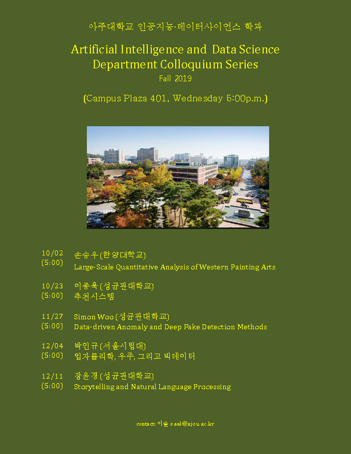 | 8991 | 학술 | 인공지능데이터사이언스학과 | 2019-10-17 | ||
