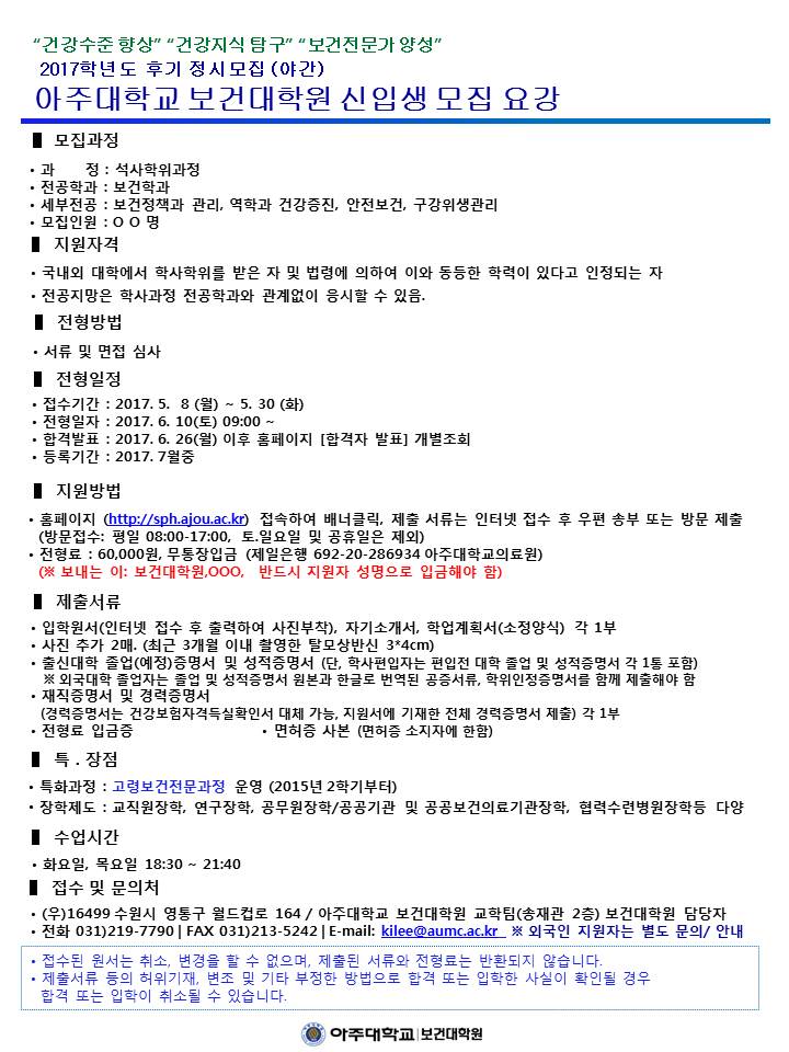 | 3622 | 입학 | 보건대학원교학팀 | 2017-05-02 |