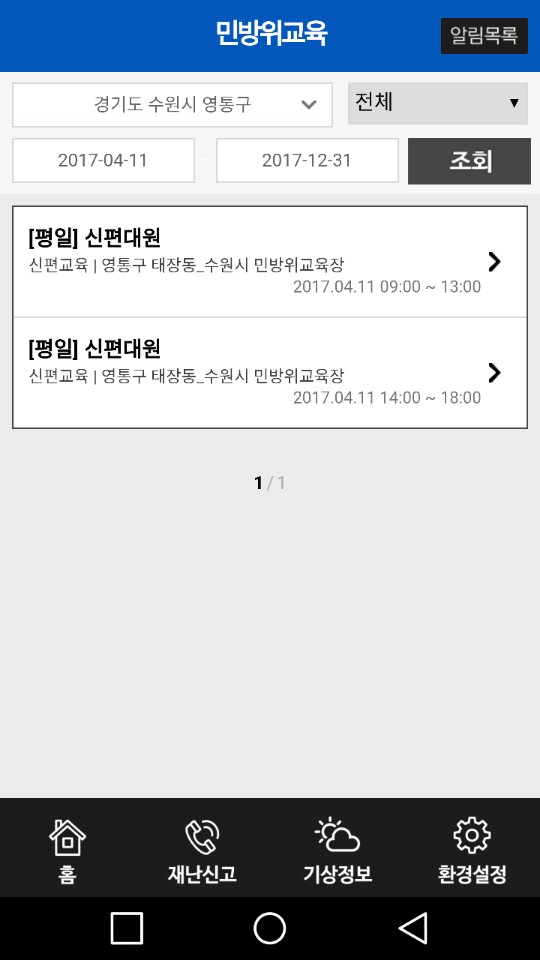 2017년도 민방위교육 실시계획 공지(영통구)