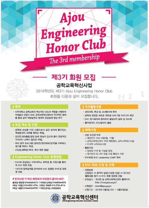 [재공지] Ajou Engineering Honor Club (EHC) 제 3기 회원 모집 + 개강총회 안내