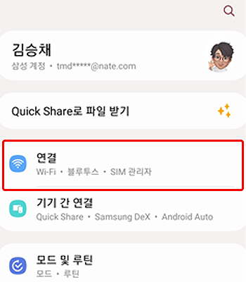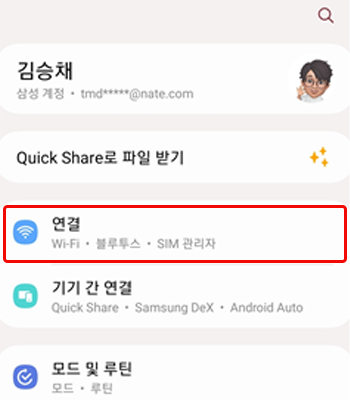 • 2. 설정 메인화면에서 [연결] 클릭