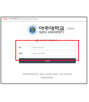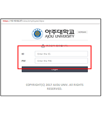 • 4. 관리자에게 발급 받은 ID/PASSWORD 입력