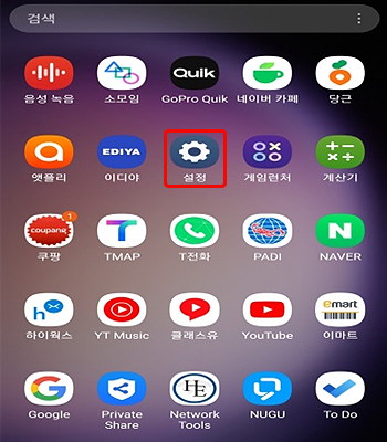 • 1.설정 아이콘을 클릭하여 설정화면으로 이동
